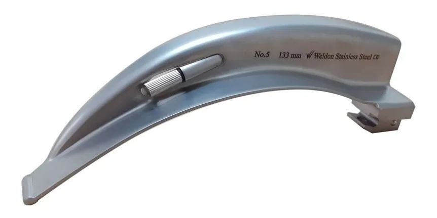 Lâmina para Laringoscópio curva F5 confeccionada em aço inox AISI 420 e 410 de alta qualidade, não estéril e autoclavável indicada para exames da laringe e para auxiliar a intubação endotraqueal do paciente, para que o mesmo possa receber uma ventilação mecânica.